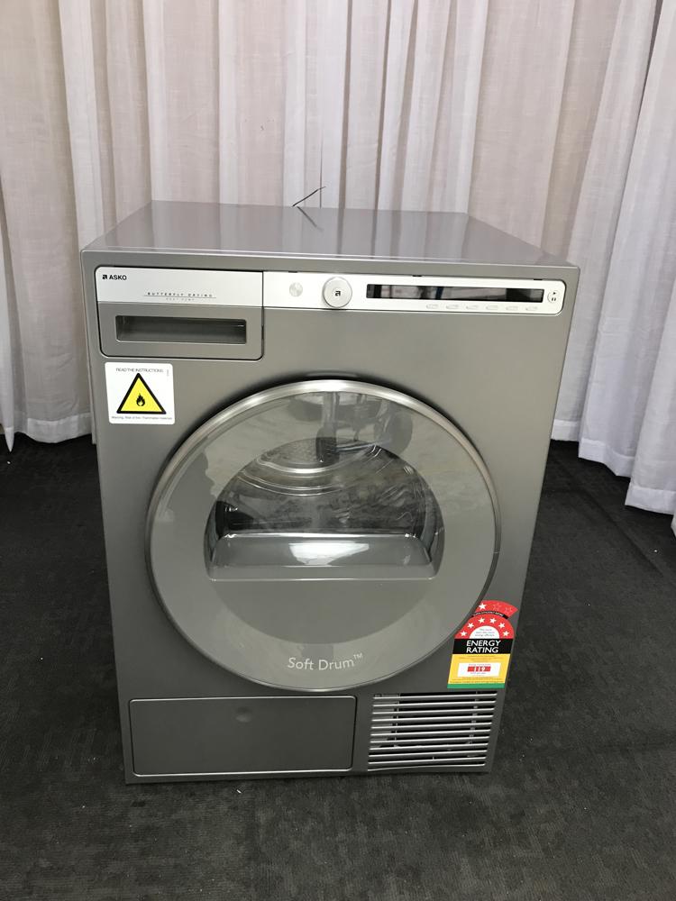 2 YEAR WARRANTY ON ALL APPLIANCES, EXTENDED WARRANTY NOT AVAILABLE. INSTALL FOR EXTRA $99, INCLUDES REMOVAL OF OLD MACHINE. FREE METRO DELIVERY!!! https://deals.asko.com.au/Howtoplaceyourorder ASKO have 3 kinds of Dryers, with unique technologies behind them: Heat Pump, Condenser and Vented. Heat Pump Dyers are closed systems in which the internal air circulates inside the machine- making them perfect for confined spaces. Furthermore, Heat Pump Dryers are not affected by warm or humid climates and effectively consume less power. Condenser Dryers have two parallel airflows- internal airflow where air is warmed up when passing through a heater and the drum, transporting moist air out. Moisture is evacuated either via a drain or in the water tank. Vented Dryers take in external air that runs through the drum with the humid air extracted. Vented Dryers require good airflow wherever placed. Tumble dryer T408HD.T.AU This energy-saving titanium heat pump tumble dryer from our Logic range has a sturdy and long-lasting construction with a stainless steel drum and a reliable brushless motor. Installation is easy since no ductwork is required and it is also suitable for confined spaces since the heat pump only requires a small amount of external air. It is easy to use and you can set different dryness levels with the auto programs, from completely dry to iron dry. 14 programs and various options will help you dry Capacity: 8 kg Heat pump Number of programmes: 14 Installation: Freestanding Range: Logic Energy stars: 8 Colour of the product: titanium The heat pump dryer consumes only 0.24 kWh/kilo laundry. This combined with the Sensi Dry™ system and the Auto programs makes ASKO a good option for the environmental conscience customer. ASKO tumble dryers have brushless motors to keep noise levels down even at the highest spinning speeds. The highly efficient long-life motors gives opportunities to develop new programmes – matching every need. The ASKO Sensi Dry™ system measures moisture in and around the machine. It also detects the amount and type of load to ensure as fast drying as possible. Construction and performance Inner drum Stainless Steel Motor Long life and quiet brushless motor Heating system Heat pump Drying types Sensor or time controlled Drum size 117 l Easy to use lint filter Yes Design and integration Door hinge placement Right/Left Adjustable feet 15 mm Easy mounting of ASKO dryer on top of the washers Yes Loading type Front load Dimensions Width 595 mm Height 850 mm Depth 654 mm Depth with door open 1165 mm Length of electrical cord 2100 mm