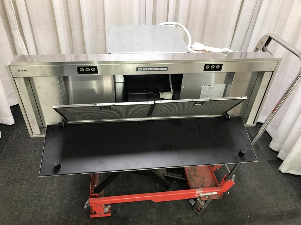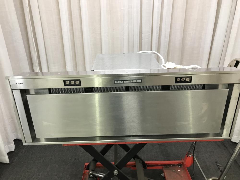 Kitchen hood CBB861S Integrated into the cabinet Installation: Built-in The highly effective filters of the ASKO cooker hoods are easily removable for cleaning. The most hygienic way to wash them is actually in your dishwasher. The Boost function runs the fan at its maximum speed for two minutes, getting rid of temporary excessive fume. After the boost period, the fan returns to the previous speed. Construction and performance Cabinet material Stainless steel Number of grease filters 2 Motor AC motor for reliable operation AirLogic™ system – Full surface extraction No Edge Extraction™ Yes Grease filter Dishwasher proof stainless steel filter Design and integration Flat underside Stainless steel Placement of motor Fixed upon cabinet Technical data Annual energy consumption 36.8 kWh Light effect 2.8 W Connected load 275 W Voltage (V) 220-240 V Dimensions Height 376 mm Width 860 mm Depth 300 mm Length of electrical cord 1500 mm Net weight 14 kg 86cm Undermount Rangehood